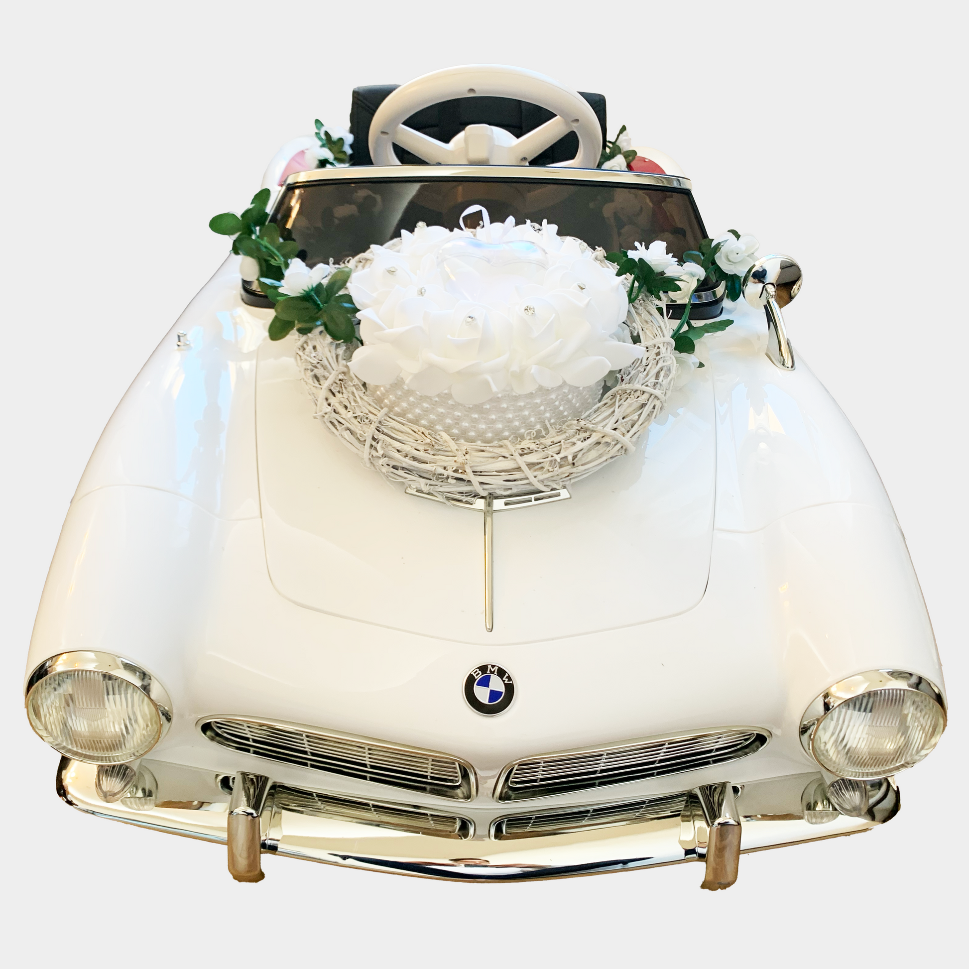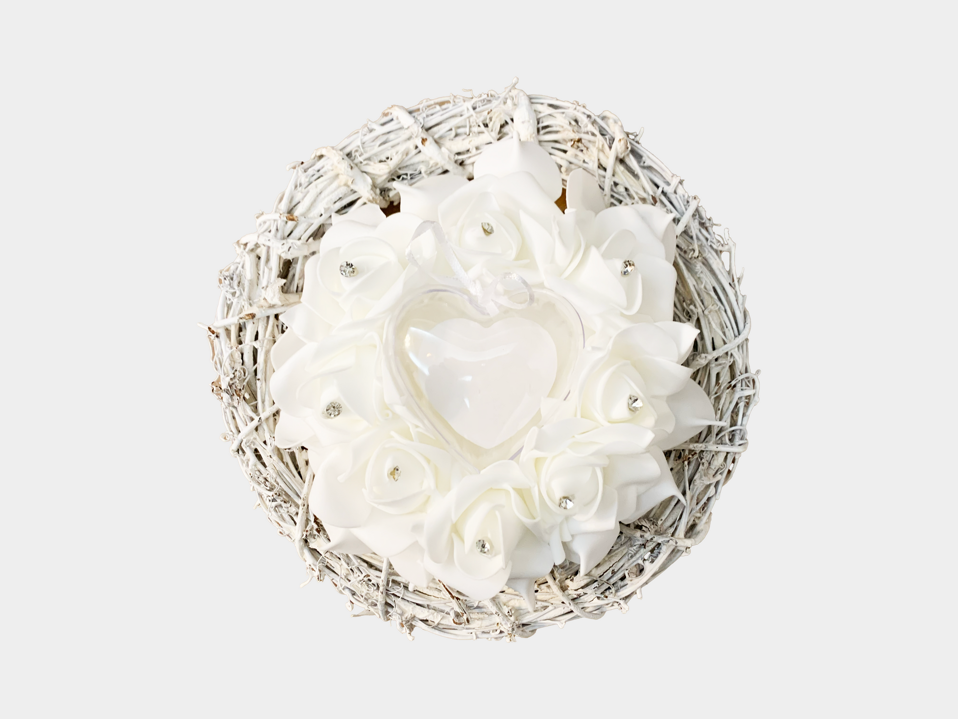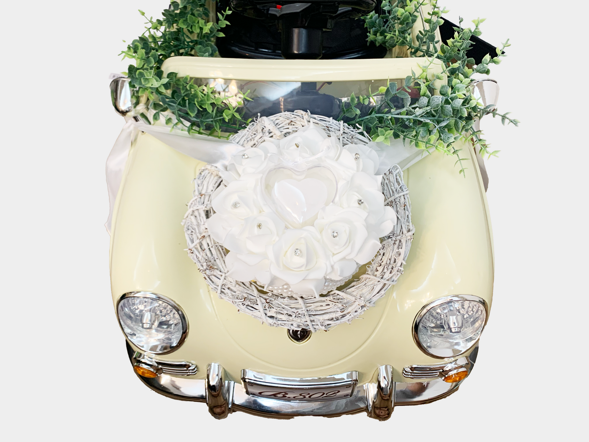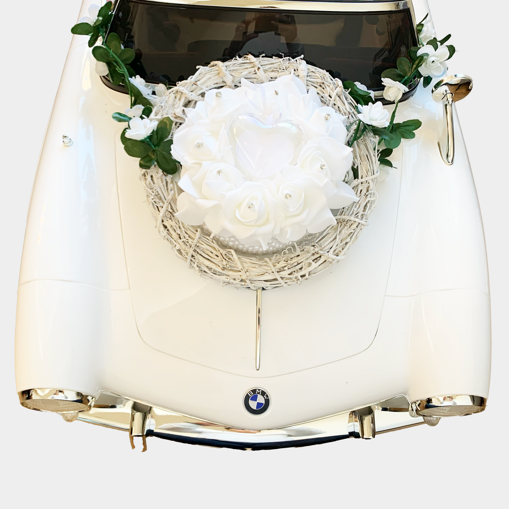1. 車体前部:白い籐リースリングとリングピローのセット