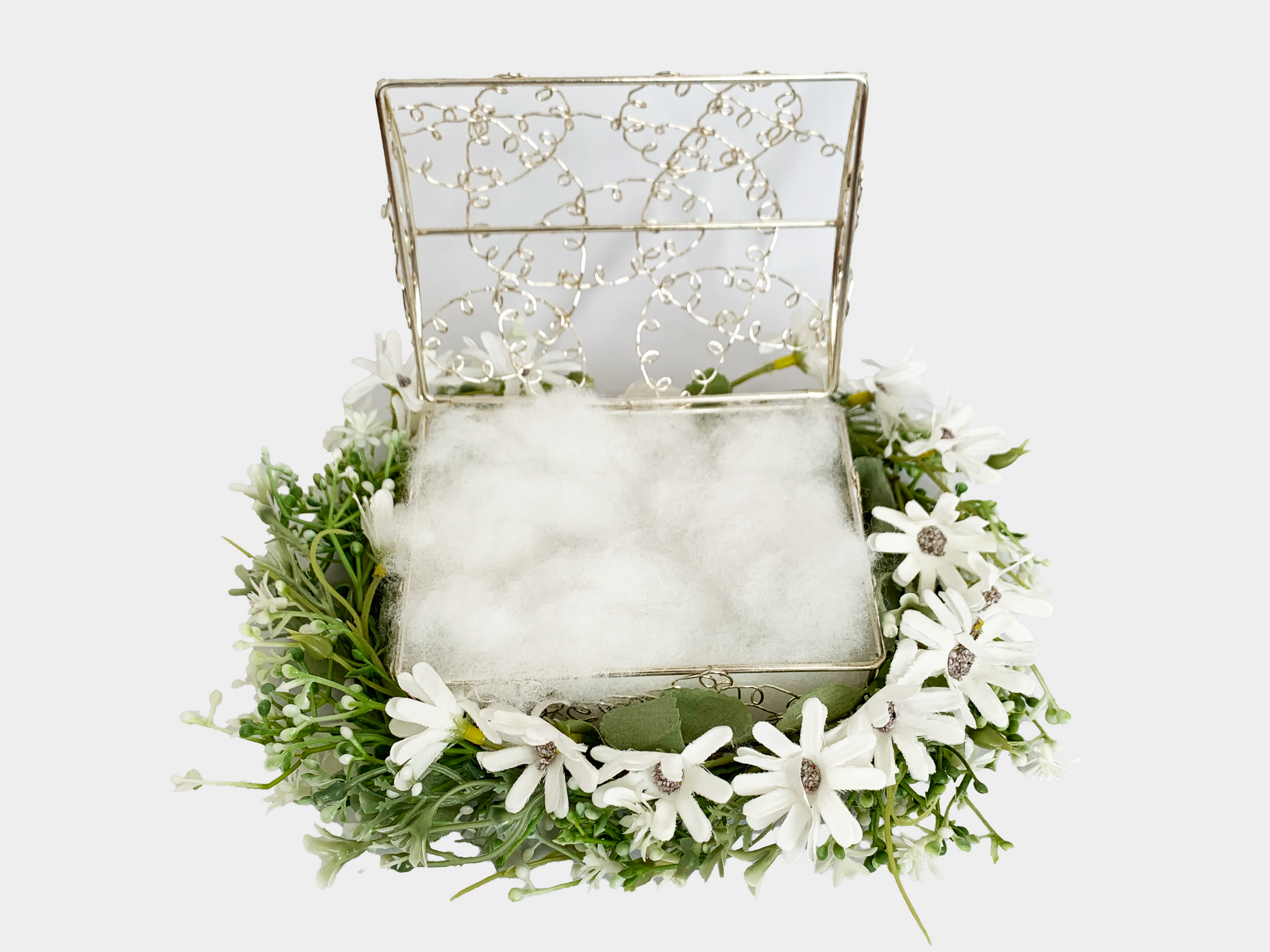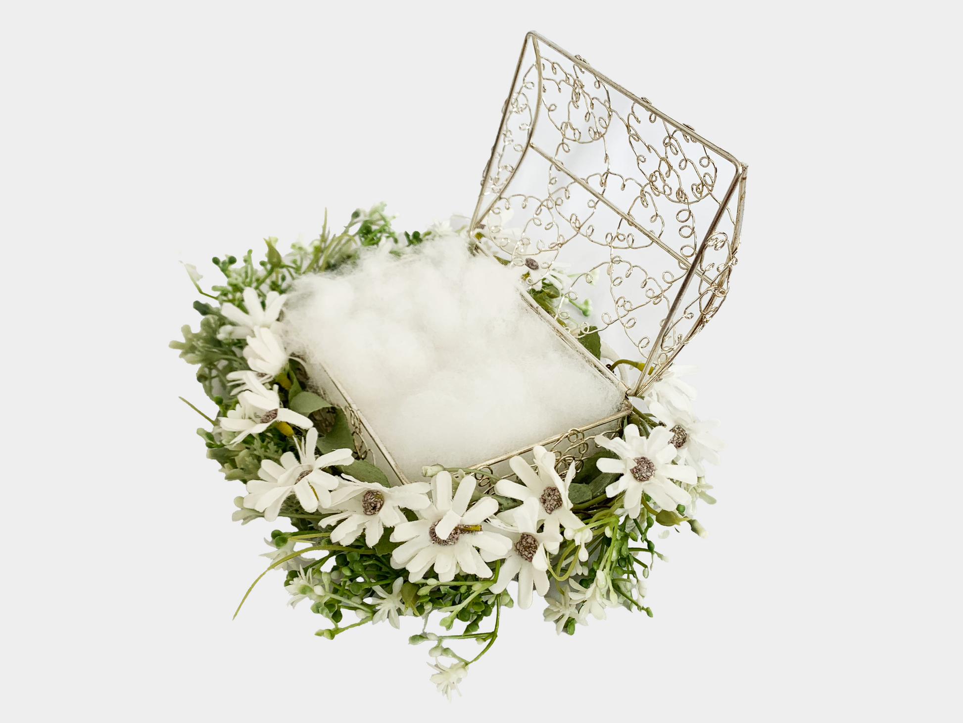 - 銀ワイヤーの箱と花のセット